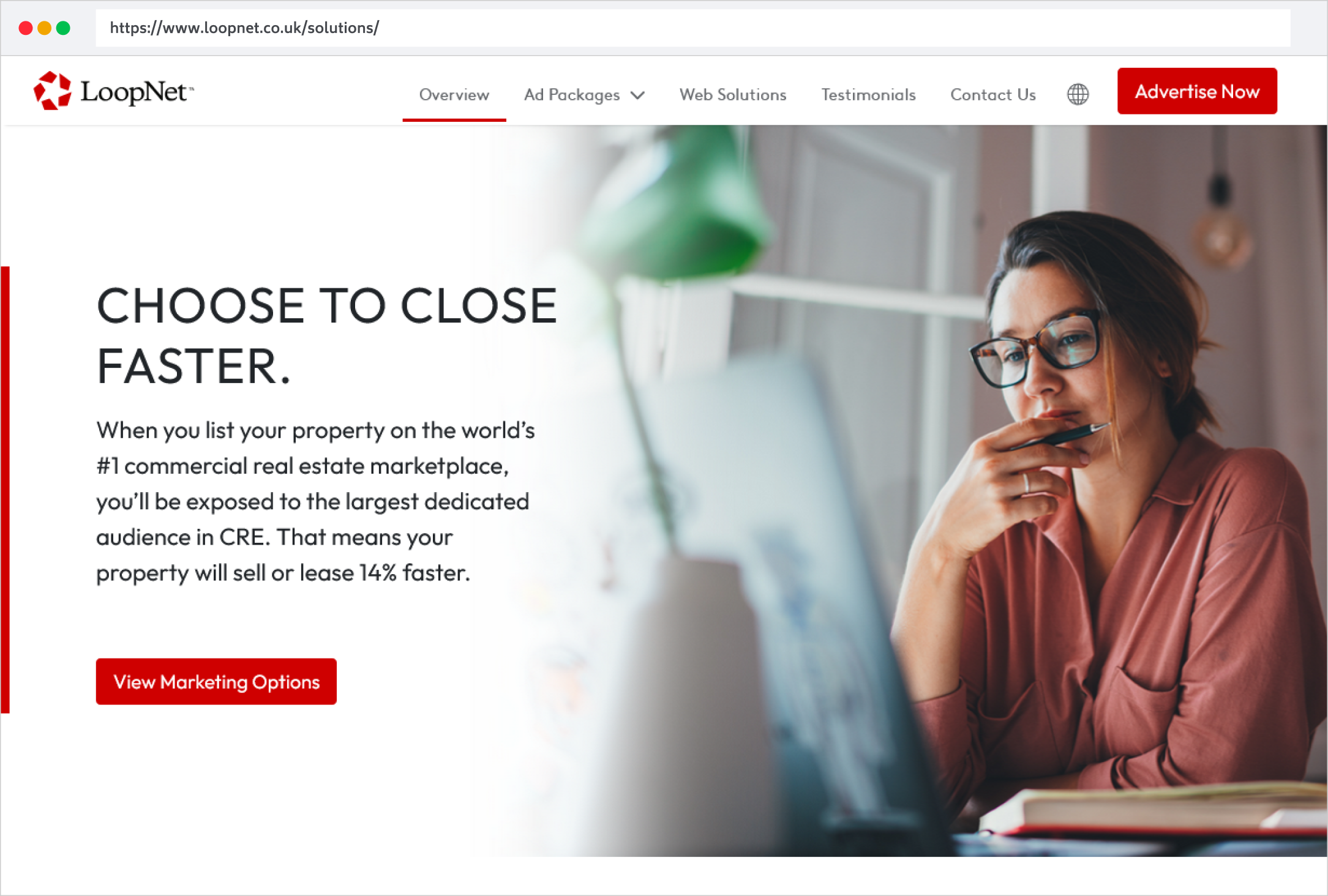 When LoopNet launched in the UK, I built the new marketing website using Site Studio and created a drag-and-drop UI component library to make updates easy for non-technical users.